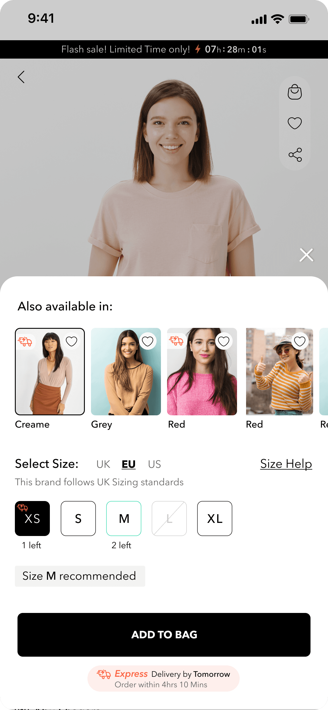 Tap a size to see availability, fit details, and delivery options.