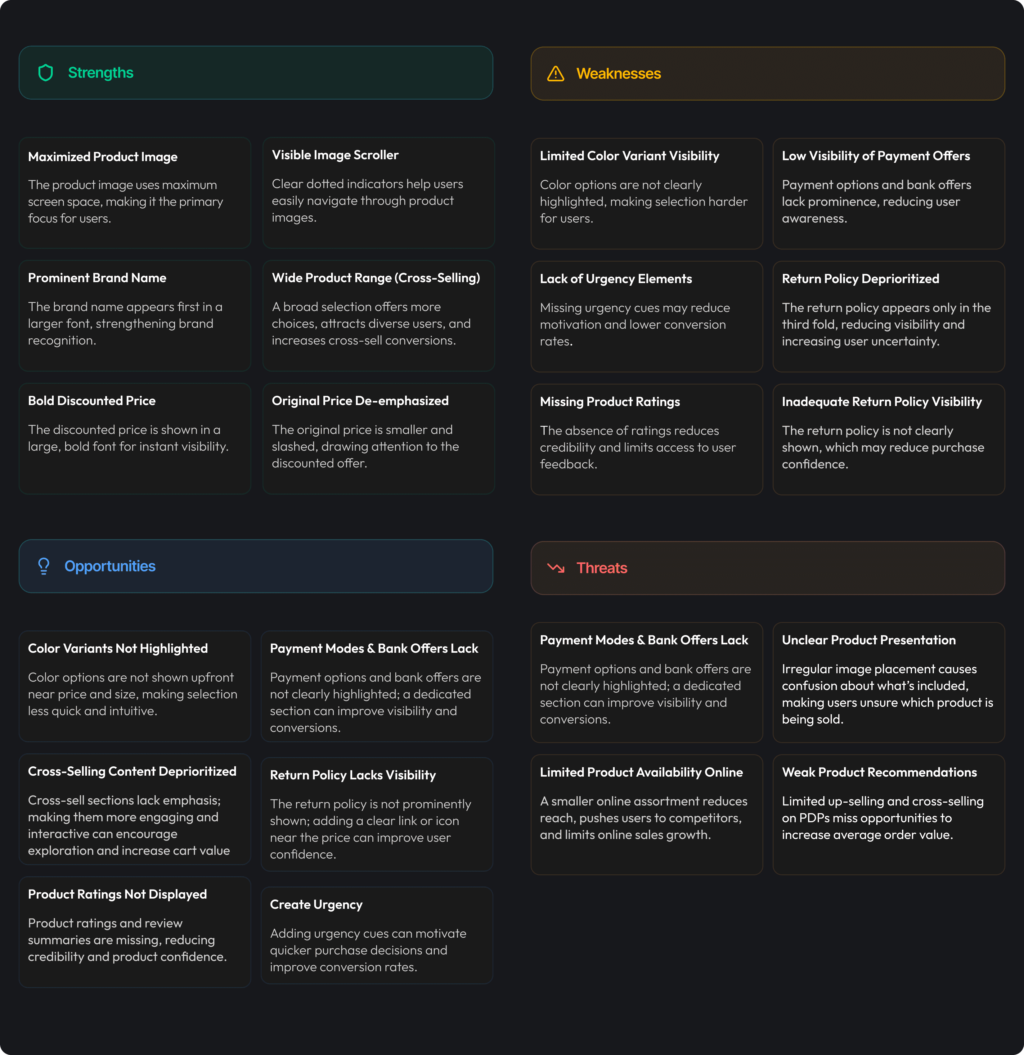 Lack of clear product information, and insufficient urgency triggers