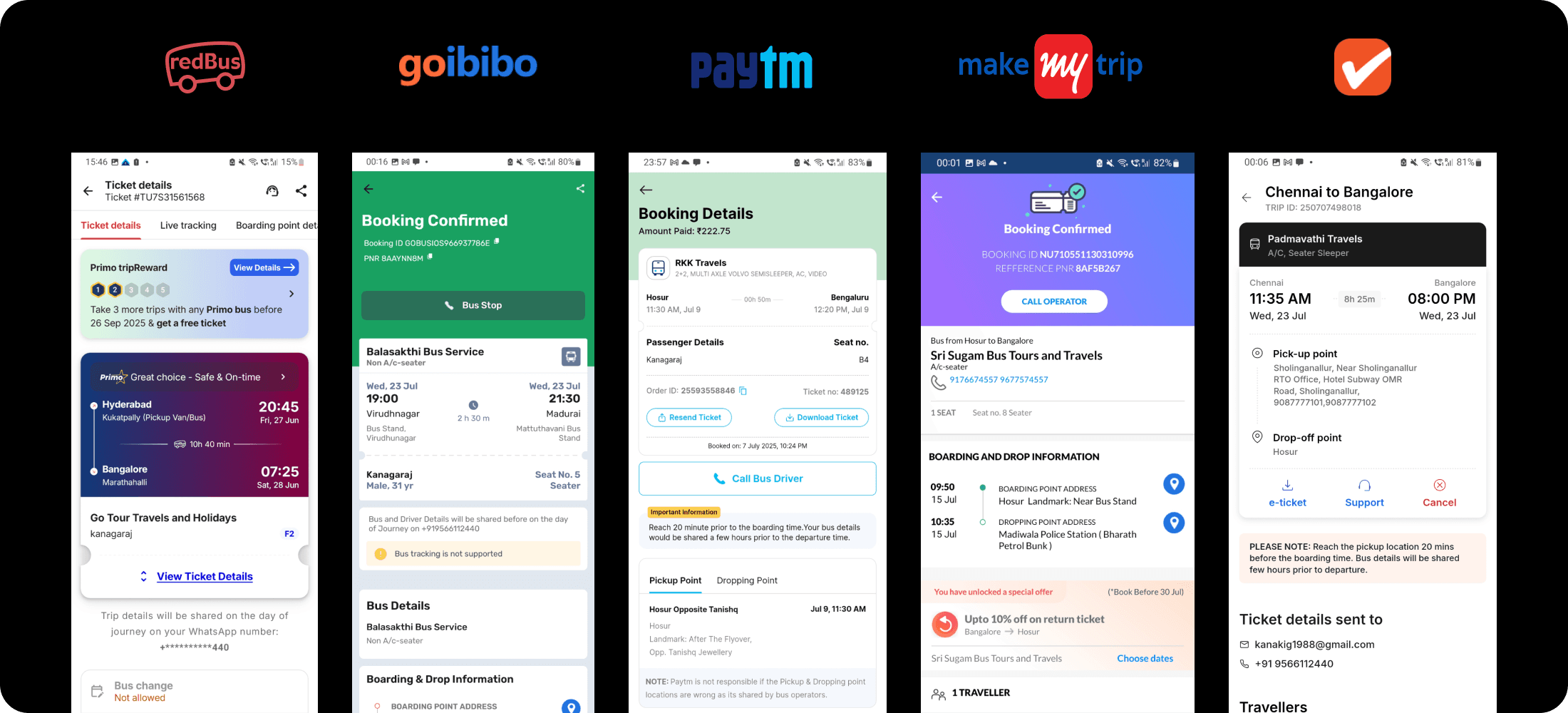 Users can easily compare schedules, bus types (Volvo AC sleeper, deluxe, and more), fares, and seat availability through a secure and intuitive interface, enhanced with discounts, cashback offers, and flexible cancellation and refund options.
