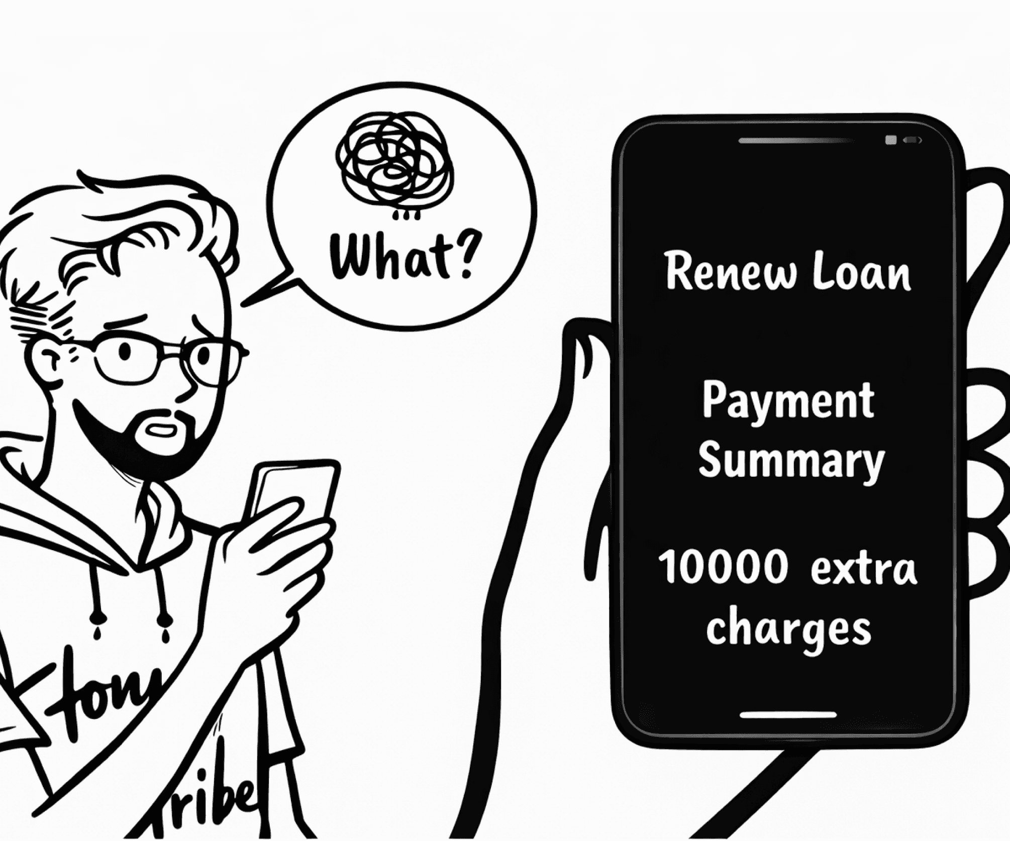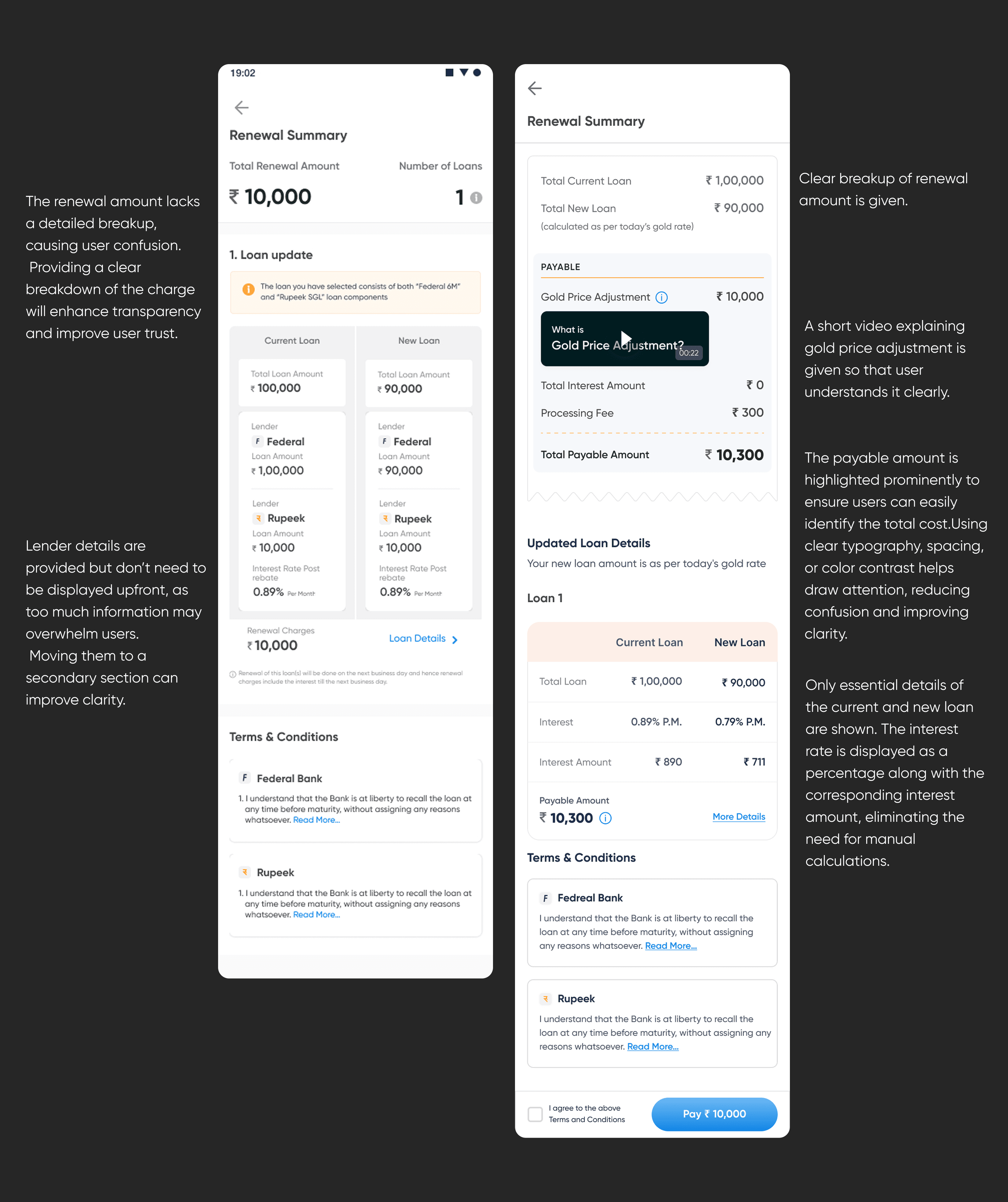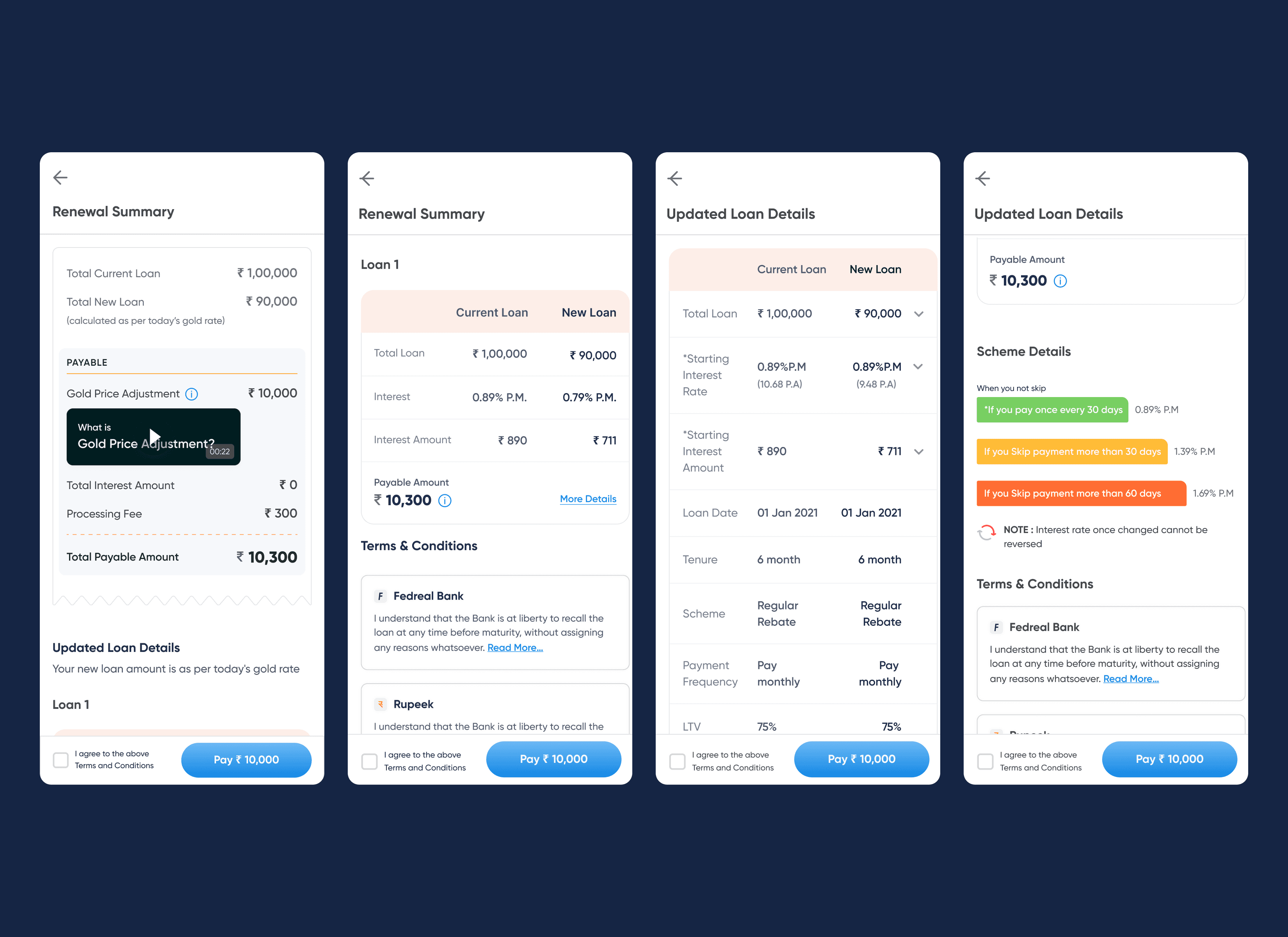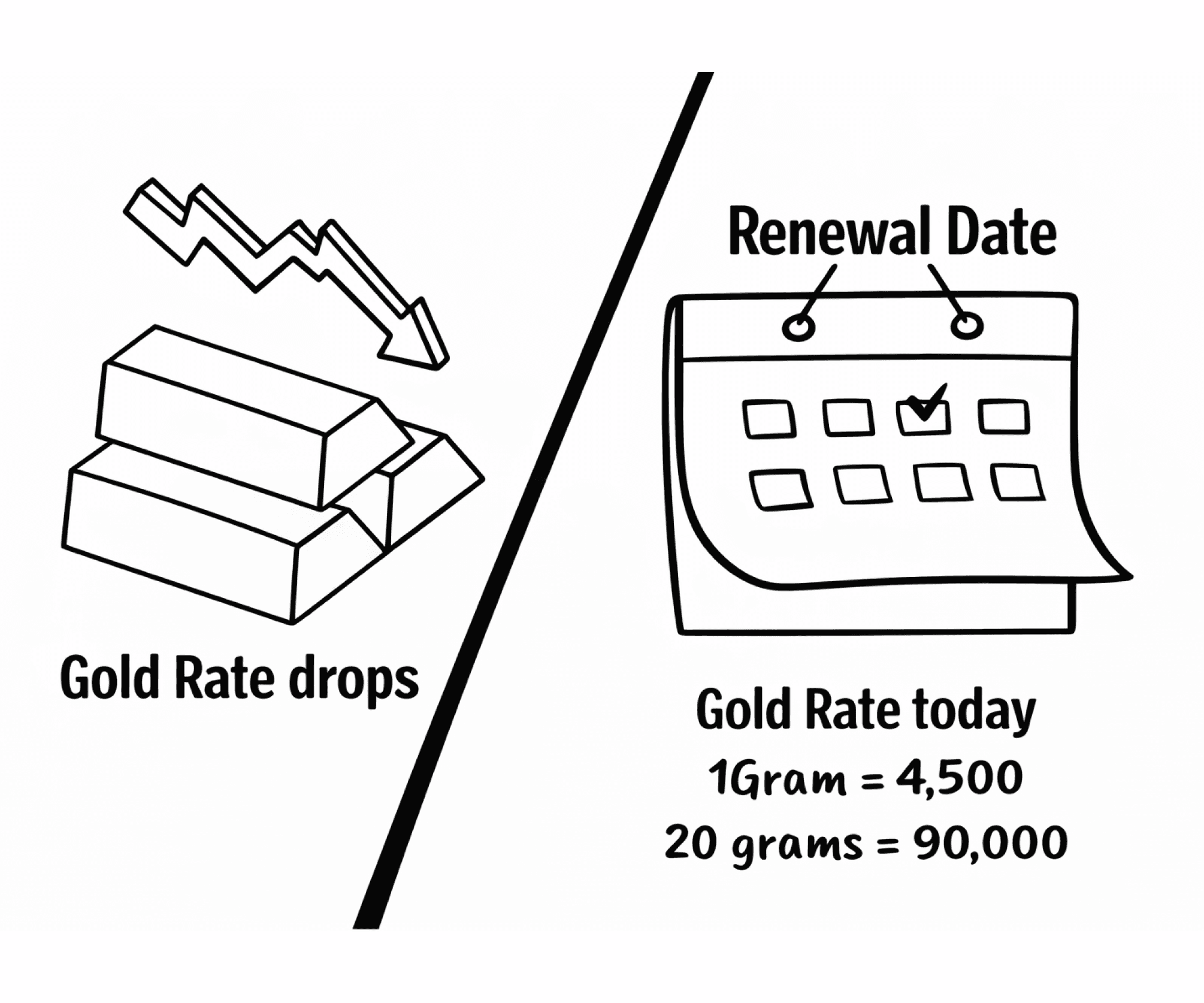 Due to a drop in gold rates, users must pay the difference amount when renewing their loans. Currently, the app lacks transparency on this concept, which is confusing.